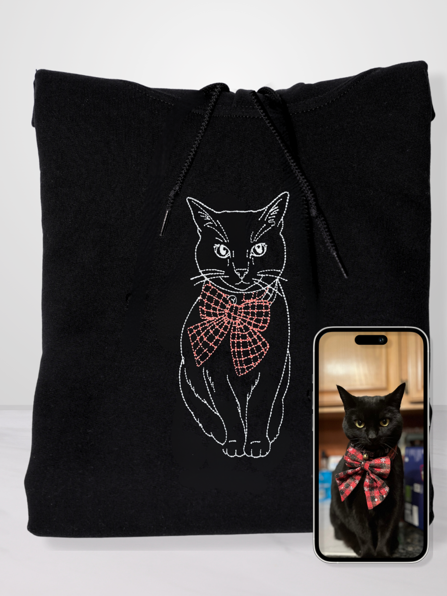 Your photo is hand-drawn by real artists, then embroidered in-house in Florida for a one-of-a-kind hoodie that lasts a lifetime. Fully customizable, ultra-soft, and made to be lived in.
